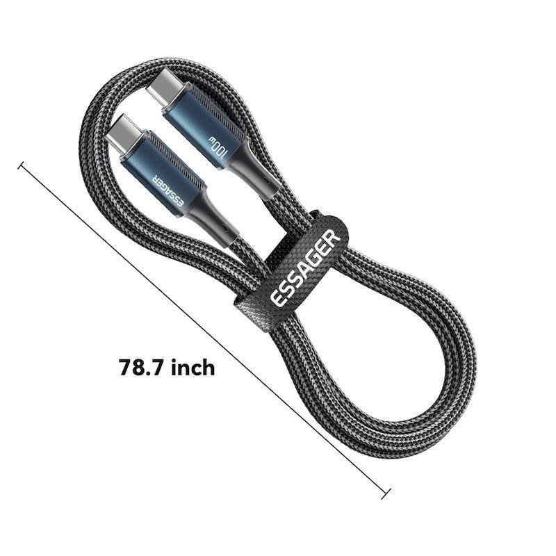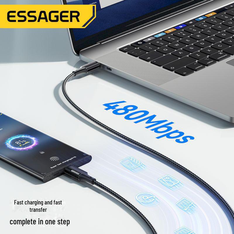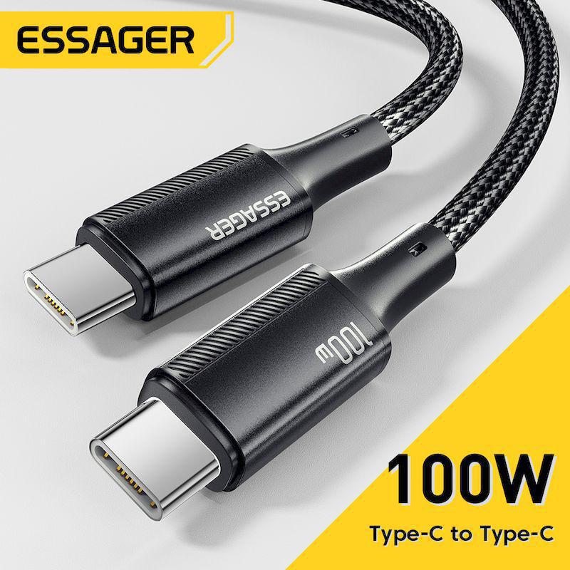 ESSAGER Двойной кабель Type-C PD100W для сверхбыстрой зарядки для планшетов и телефонов.