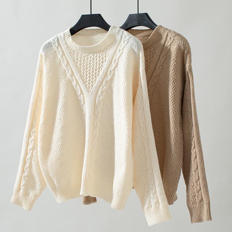 Женский осенне-зимний трикотаж с круглым вырезом и вырезом, однотонный свитер с переплетенными нитками
