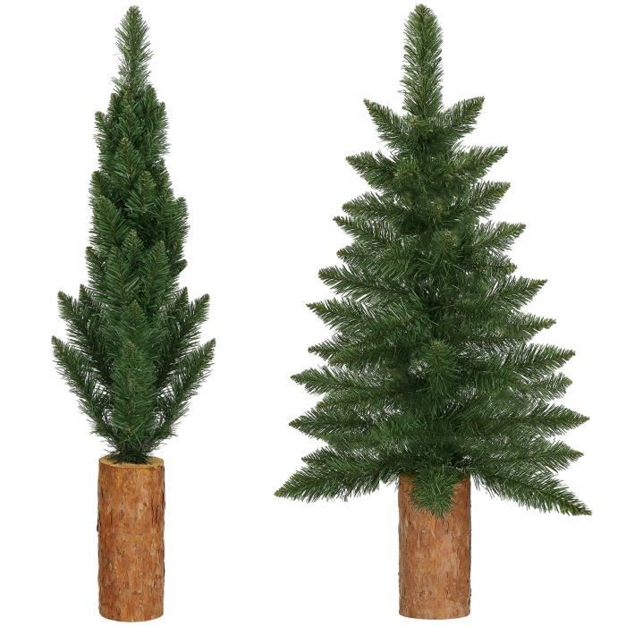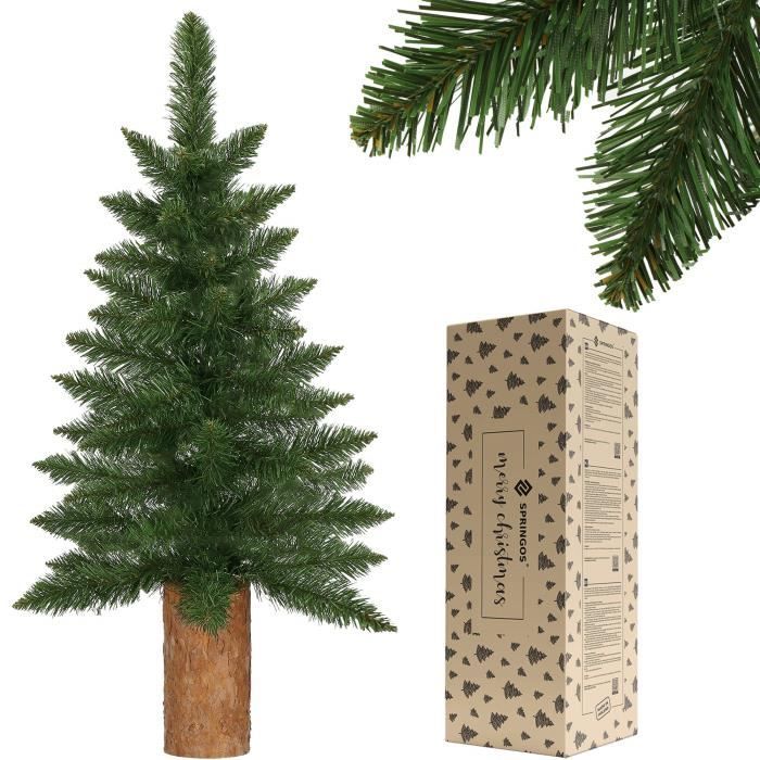Sapin de Noël artificiel - SPRINGOS - 100 cm - Vert avec tronc naturel - PVC, PE - Intérieur