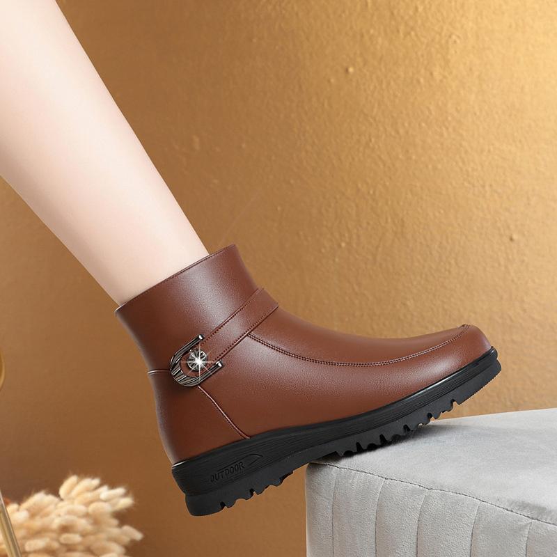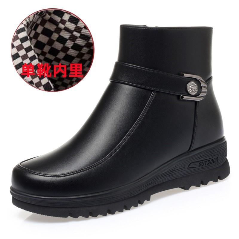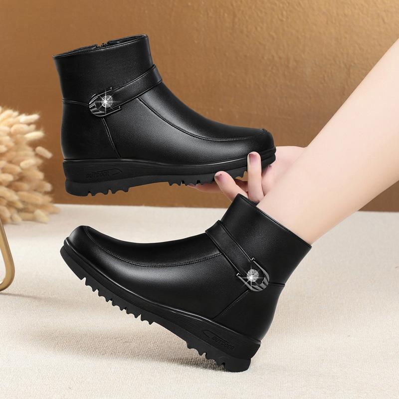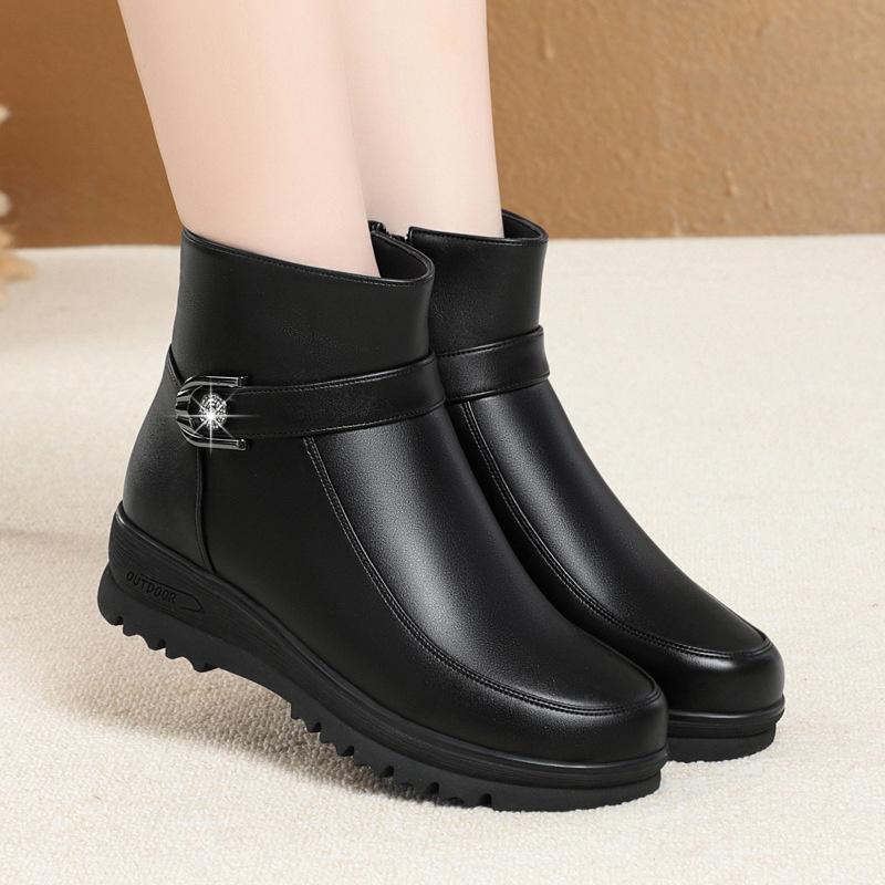Модные зимние женские элегантные удобные кожаные ботильоны с мягкой подошвой, толстые плюшевые теплые зимние непромокаемые нескользящие ботинки для мам