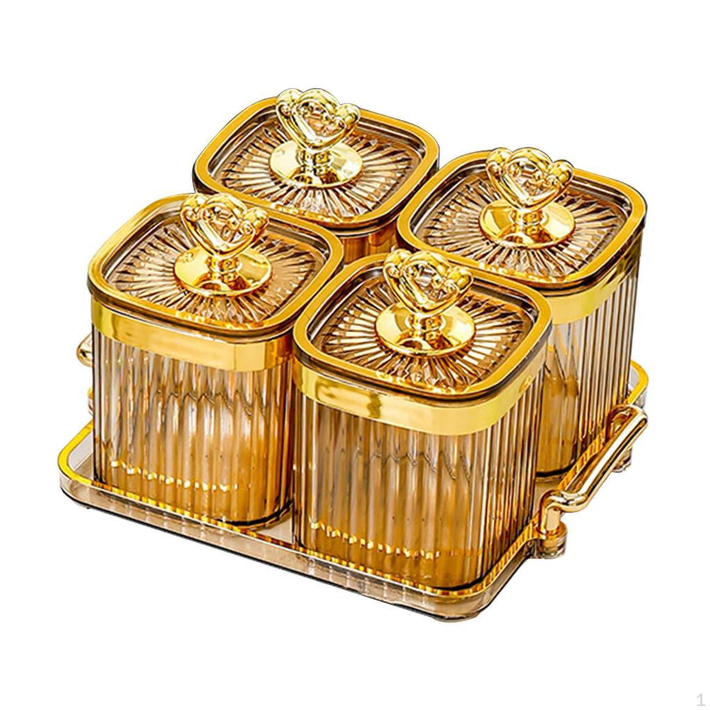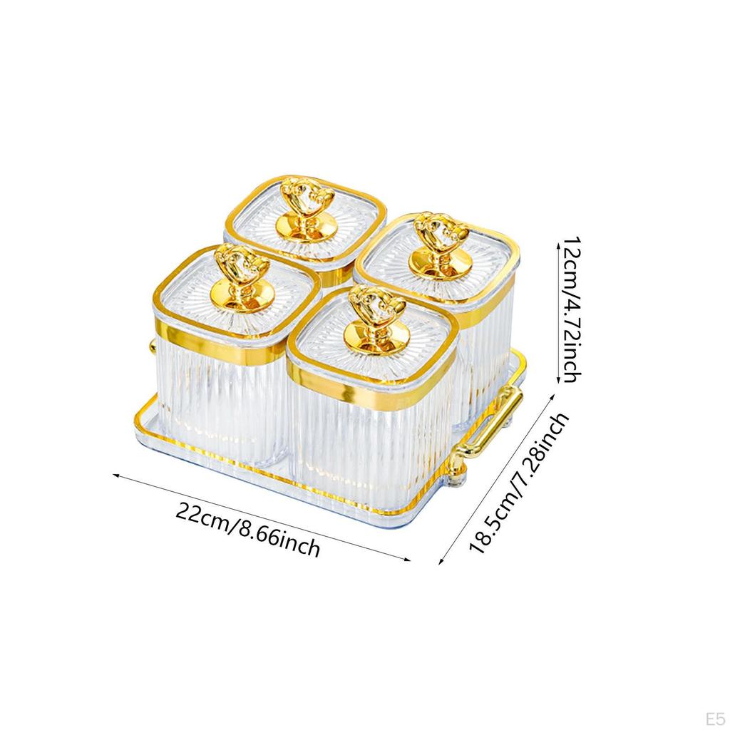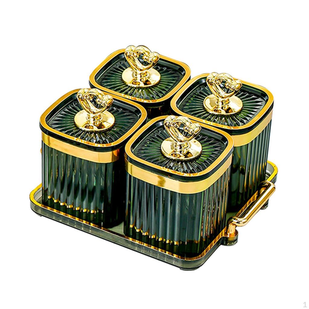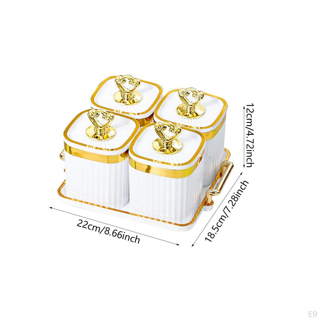 - 【Портативный】: Консервная тарелка для конфет и орехов с крышкой, силиконовая петля может эффективно запечатать еду или приправу внутри контейнера, пыленепроницаемая, с подставкой, легко перемещать