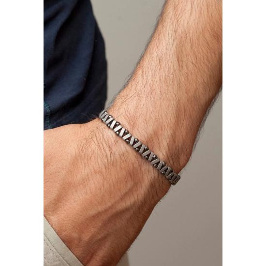 Вязаный мужской браслет из натурального камня макраме с гематидом