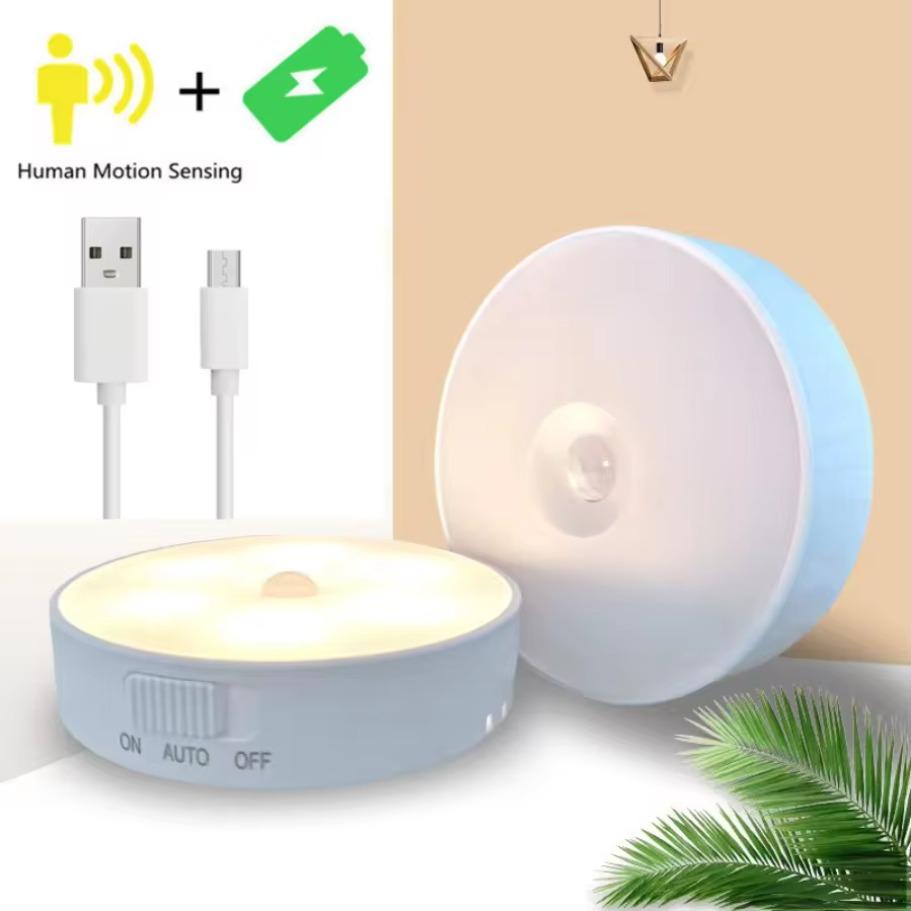 Датчик движения Светодиодный USB Ночник Круглый Заряжаемый Светильник Для Спальни Кухни Лестницы Прихожей Шкафа Освещение Лампа Для Шкафа