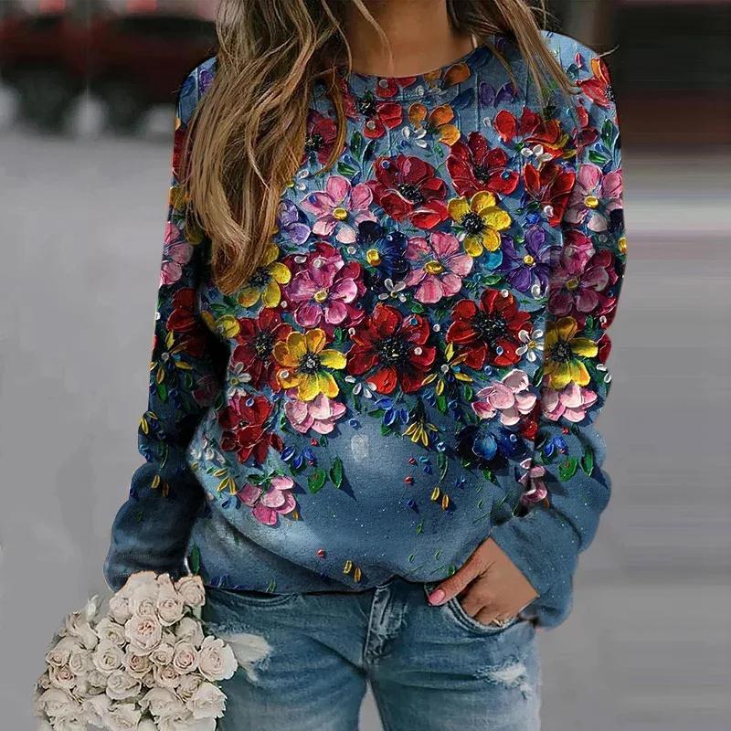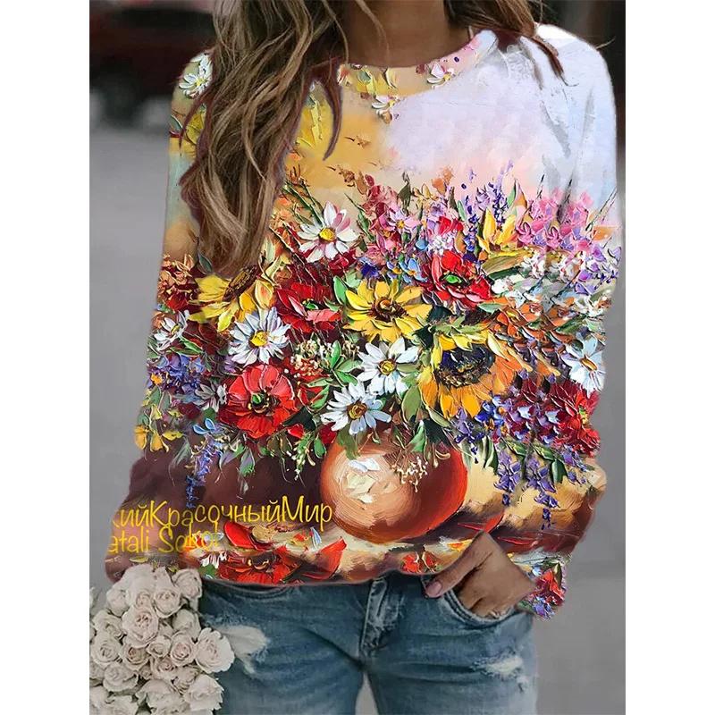 Новые зимние 3D-принты с разноцветными цветами, толстовки, модные пуловеры, женская уличная одежда, винтажная одежда унисекс 2000 года, забавные топы для девочек