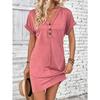 Летнее женское модное универсальное платье с пряжкой, V-образным вырезом, закатанными рукавами, однотонное платье