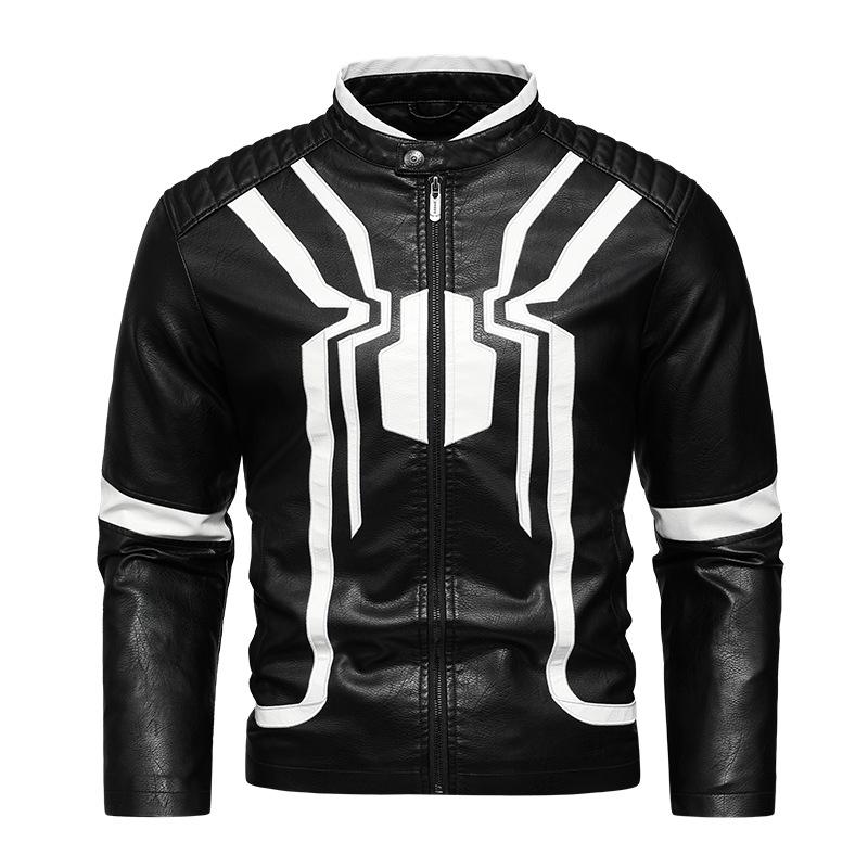 Мужская кожаная куртка, мотоциклетная куртка, европейская и американская художественная вышивка, контрастные цвета, мужская куртка из искусственной кожи