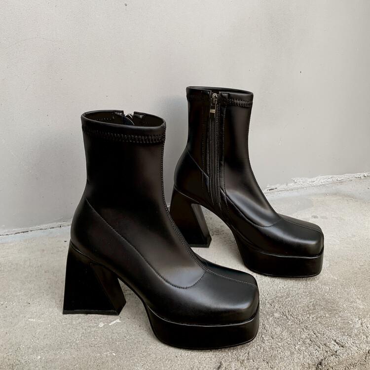 Модные массивные ботинки челси 2024 года, зимние женские туфли на платформе с застежкой-молнией и высоким каблуком, ботильоны с квадратным носком, туфли-лодочки в стиле панк, сексуальные мотоциклетные ботинки