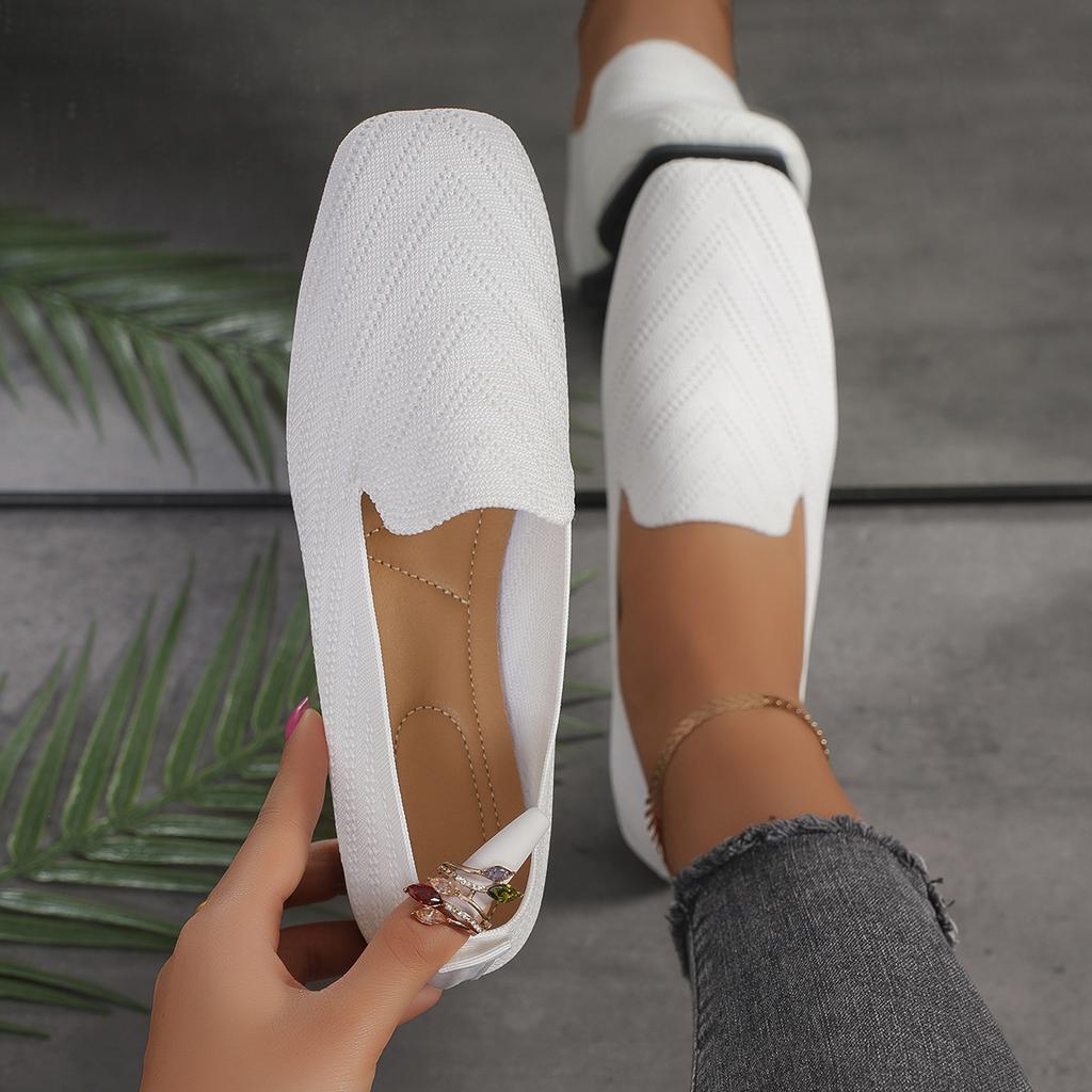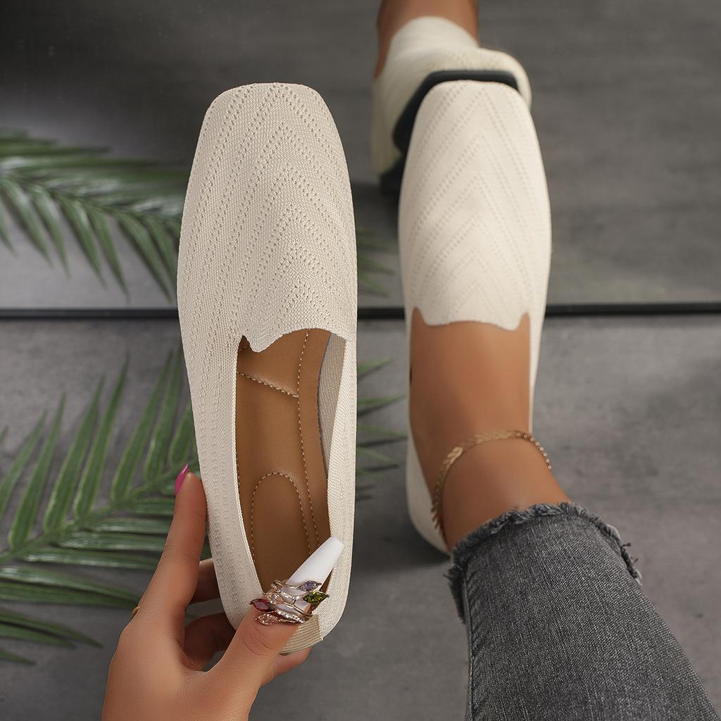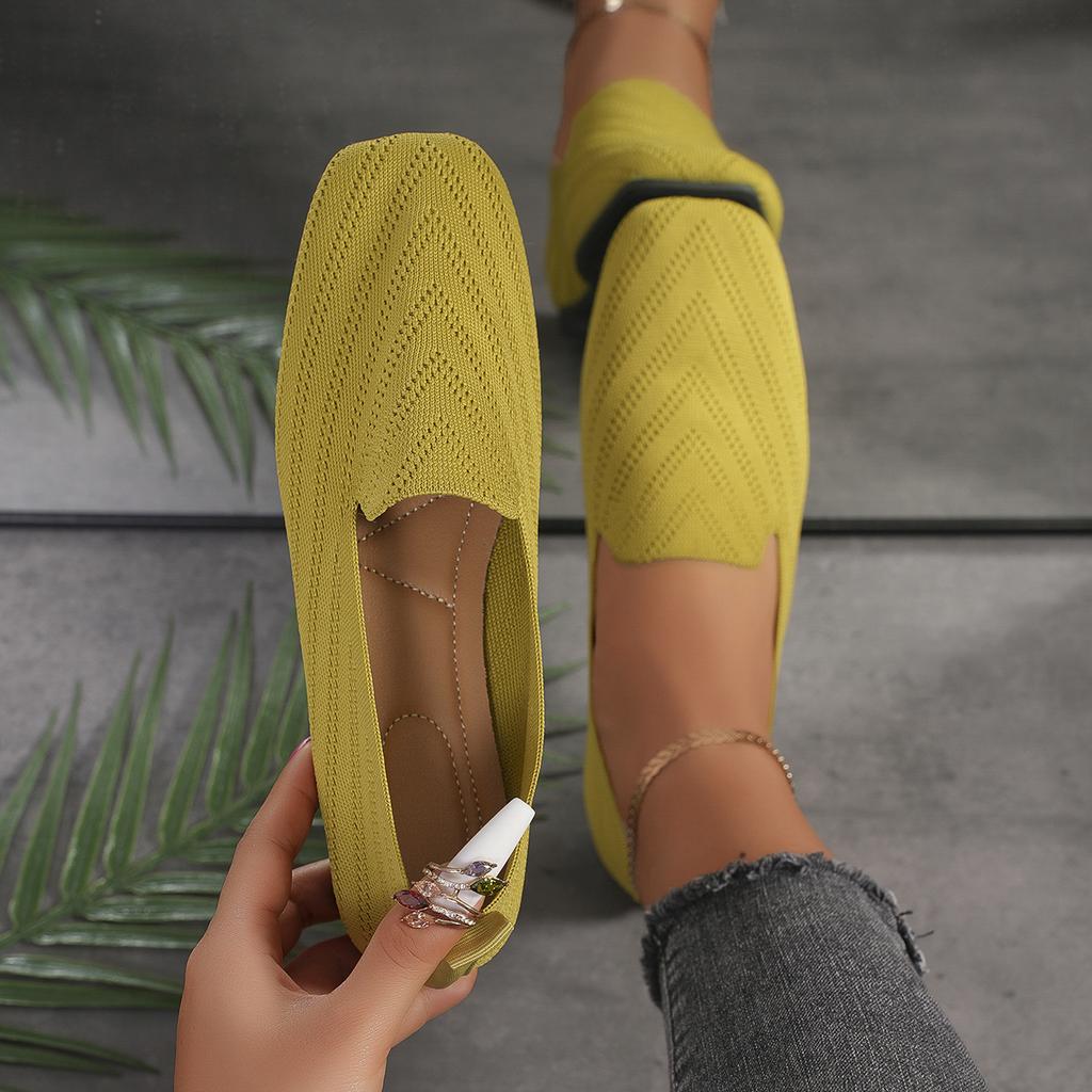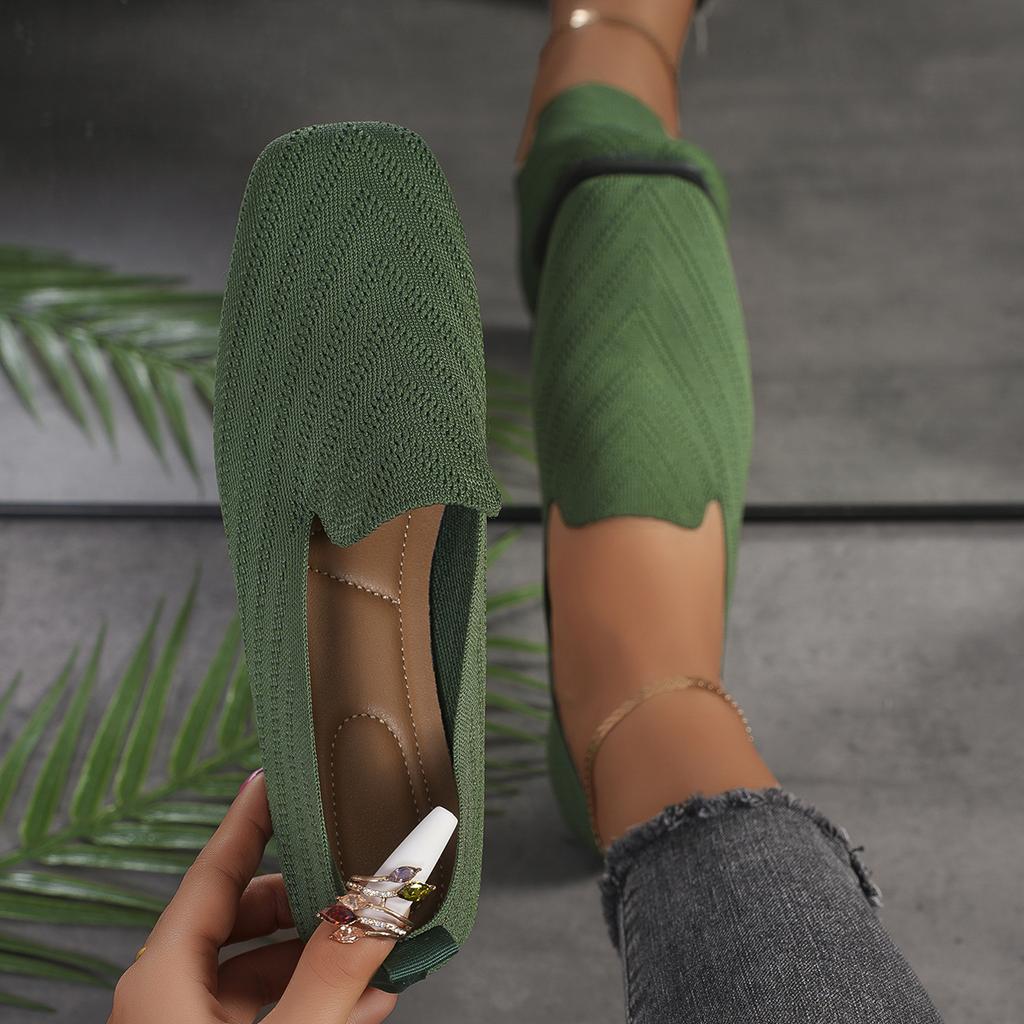 Женские туфли на плоской подошве с острым носком, однотонные трикотажные мокасины без застежек, весенние повседневные дышащие балетки, сетчатые дышащие туфли на плоской подошве