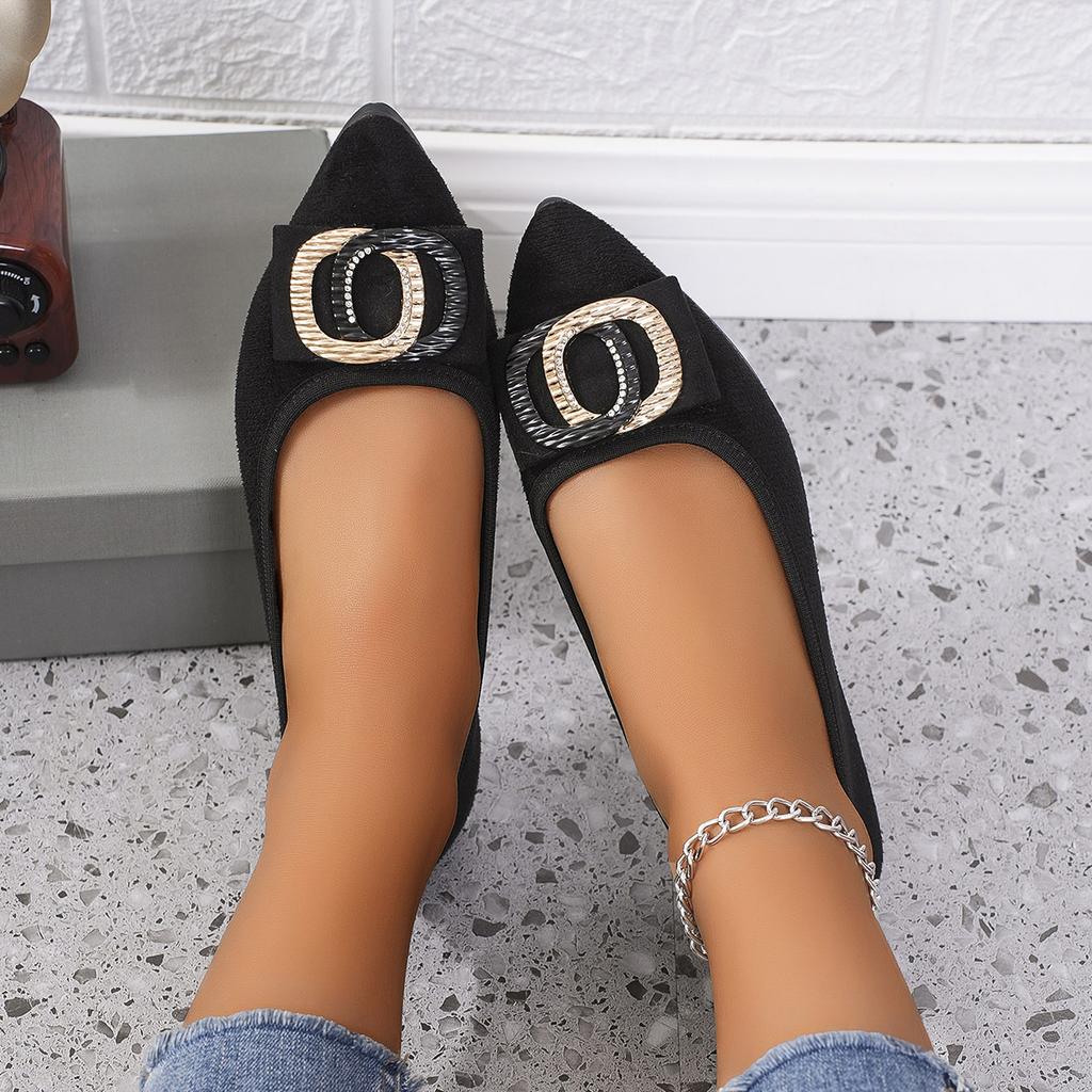 Женские балетки весна-осень с металлической пряжкой для женщин, платье, острый нос, без застежек, офисные лакированные кожаные лоферы