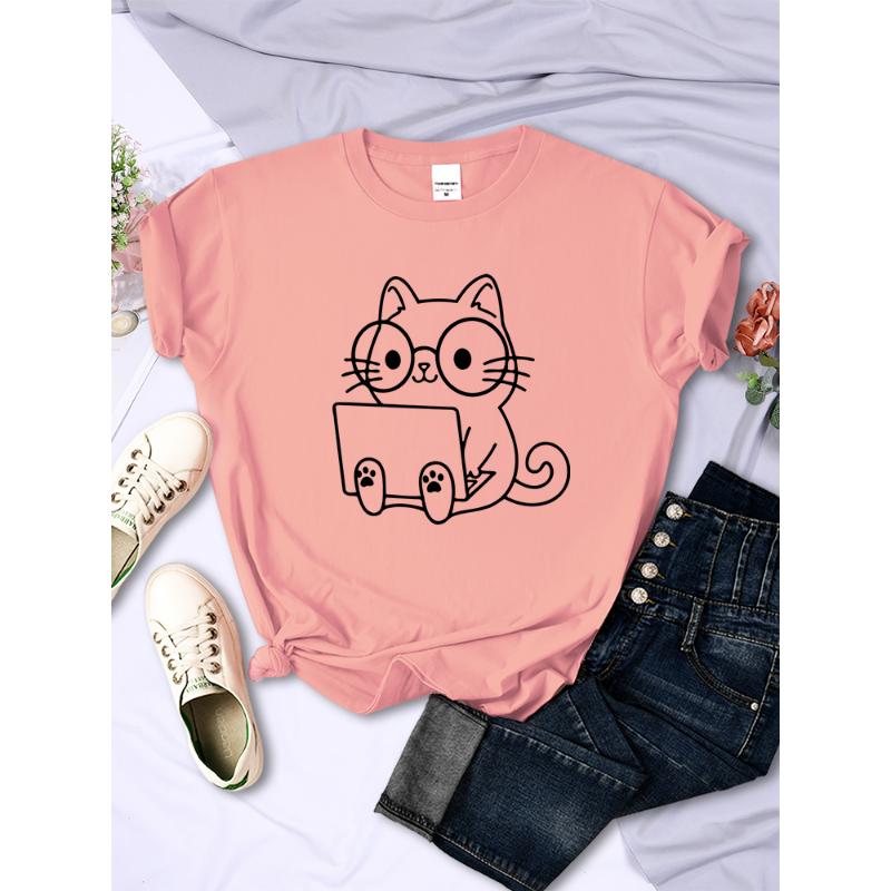 Женская футболка с Тщательным изучением работы, эскизы кошек, индивидуальная трендовая повседневная футболка, одежда, уличные креативные топы, женские топы с коротким рукавом
