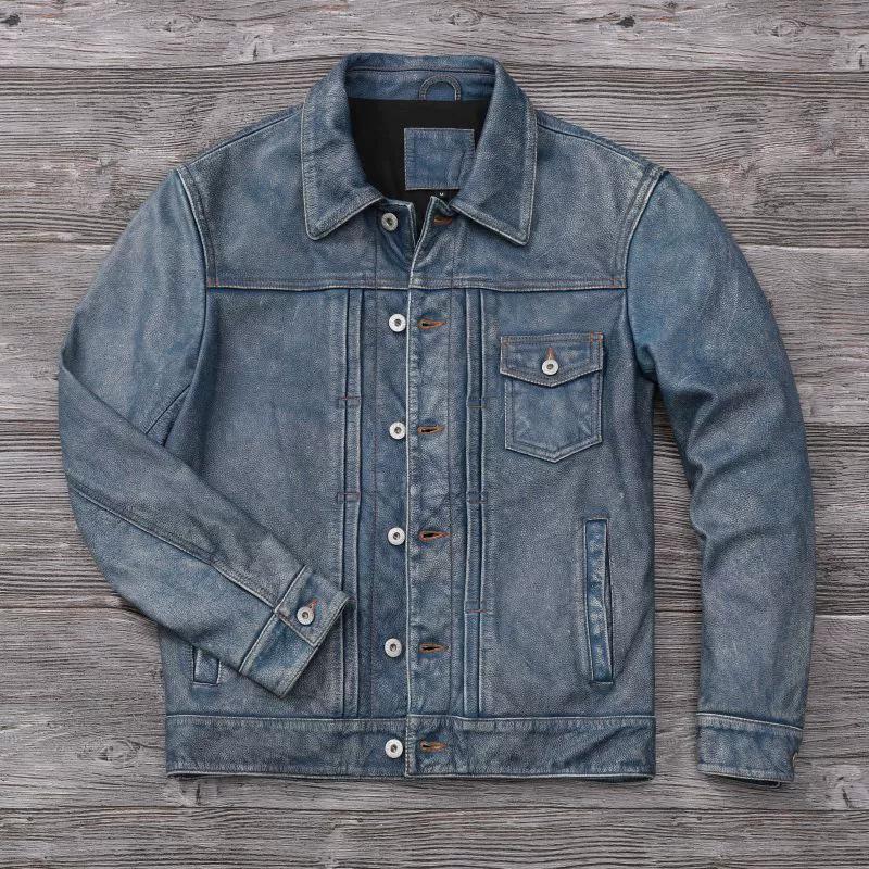 Китайский размер винтажная синяя натуральная кожаная куртка мужская 506 стиль Slim Fit короткая воловья кожа мужское кожаное пальто осень