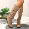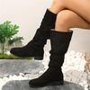 Сапоги-плиссе женские из искусственной замши с флоком, высокие сапоги до колена, зимняя женская мода 2024 года, сапоги-ботфорты на низком квадратном каблуке, женские сапоги-рыцари