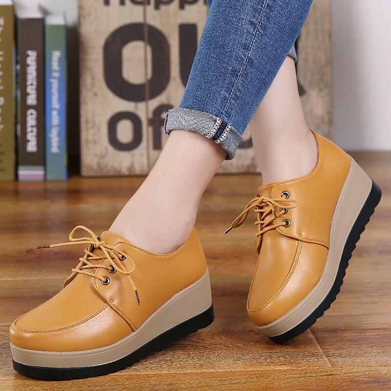 2024 Брендовые кожаные кроссовки на плоской подошве, женские туфли на платформе со шнуровкой, женские мокасины на танкетке, женские лоферы, повседневная обувь — купить товар онлайн с бесплатной доставкой по всему миру!