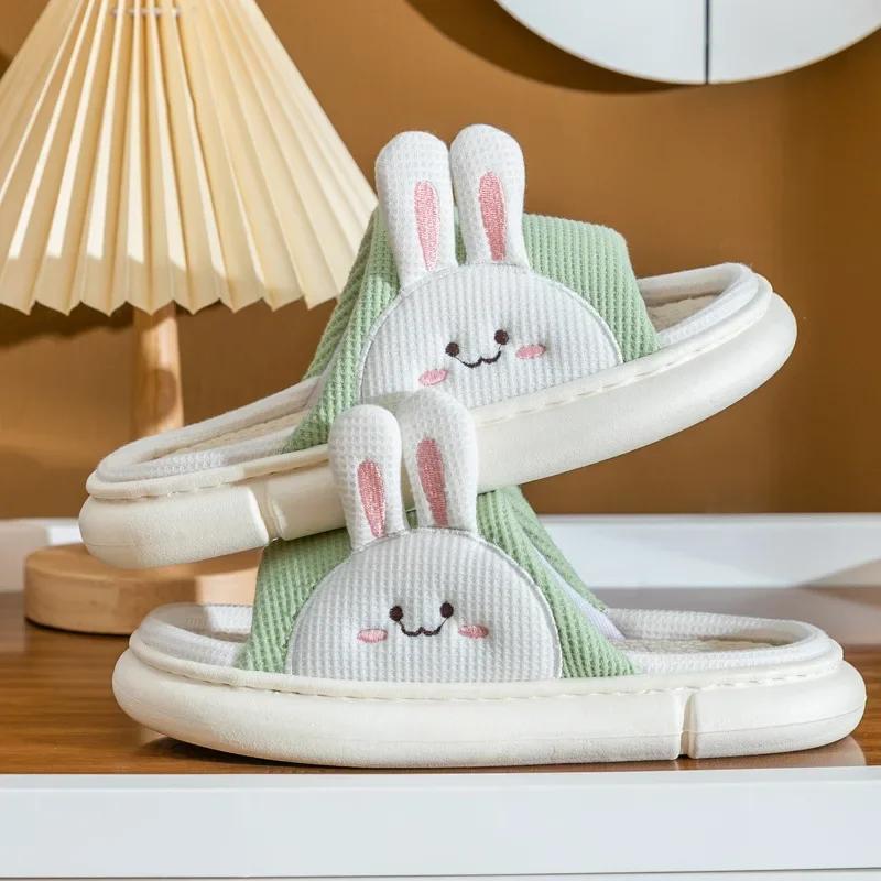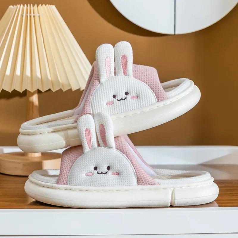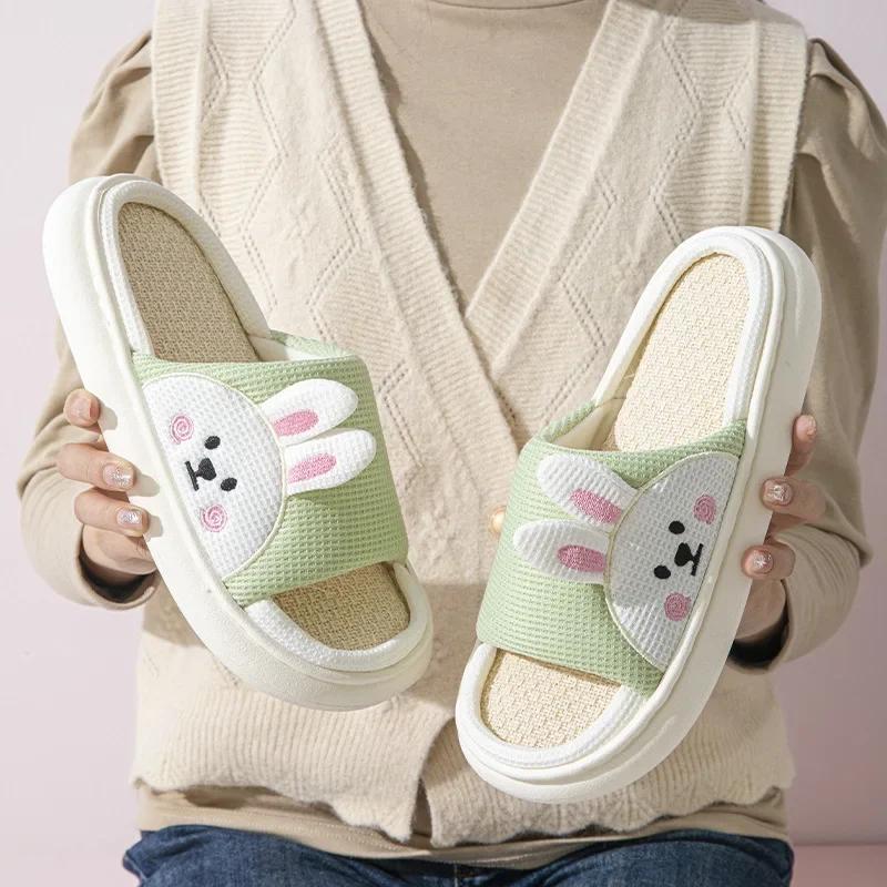 Модные льняные тапочки на платформе для женщин, домашние, милые, с рисунком кролика, дизайнерская обувь для девочек, модные, повседневные, домашние тапочки для женщин, элегантные, с открытым носком