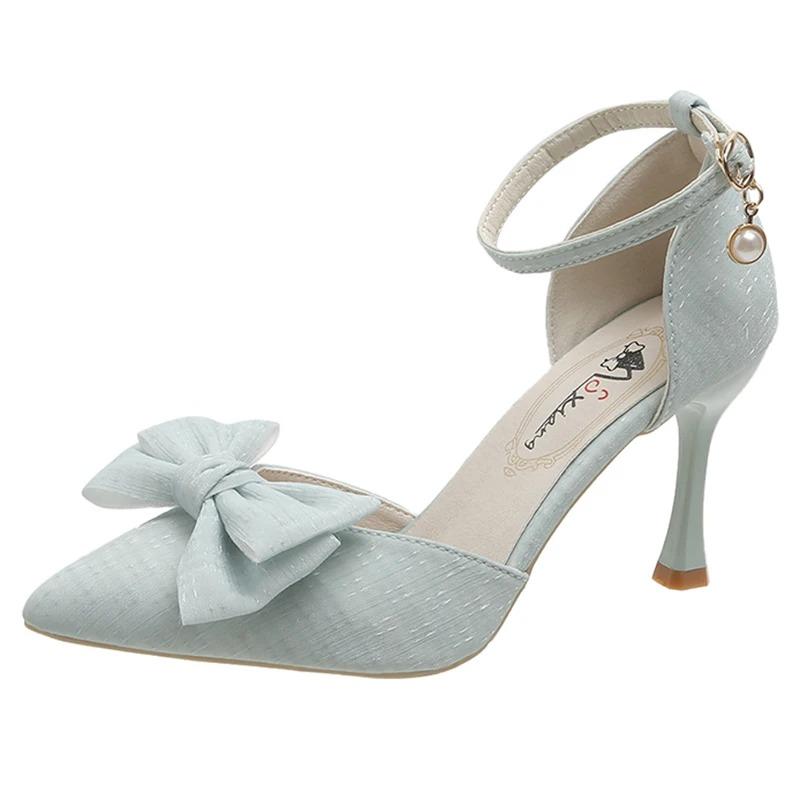 Модные туфли-лодочки с бантом и ремешком на щиколотке для женщин 2024 года, новые шелковые туфли на очень высоком каблуке для женщин, сексуальные туфли на тонком каблуке для вечеринок для женщин