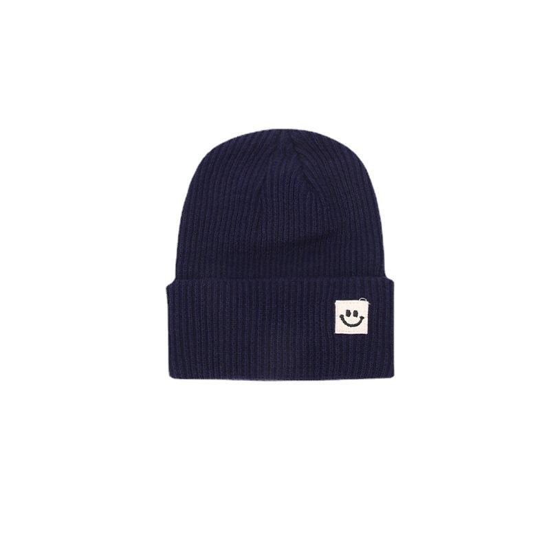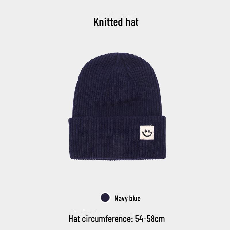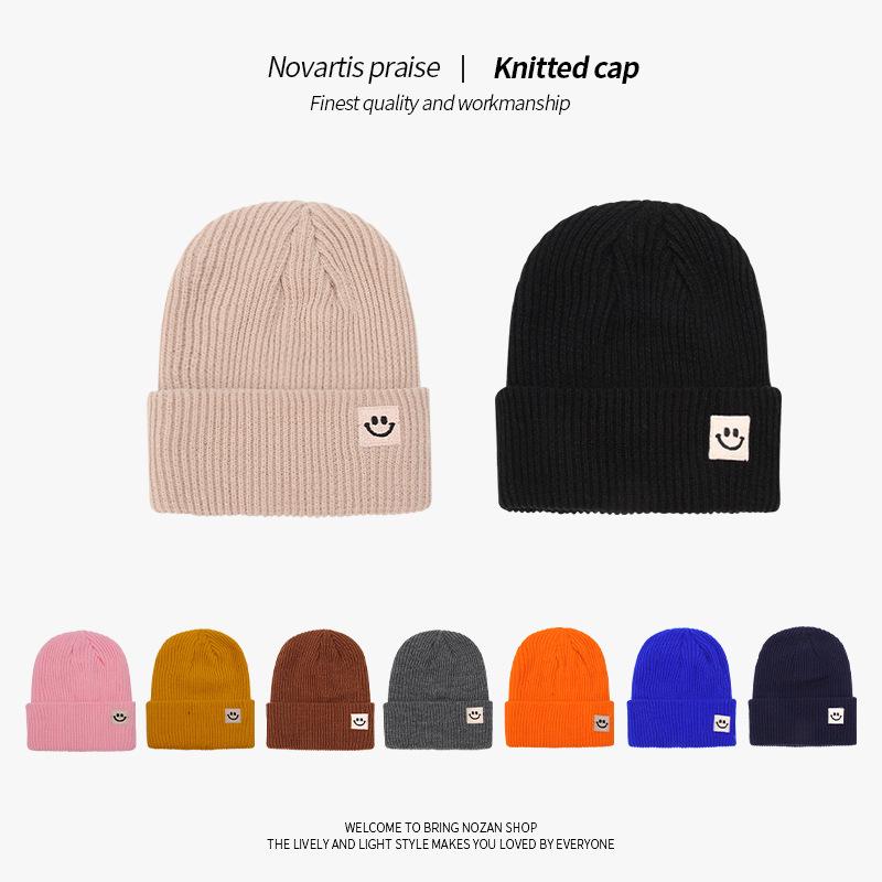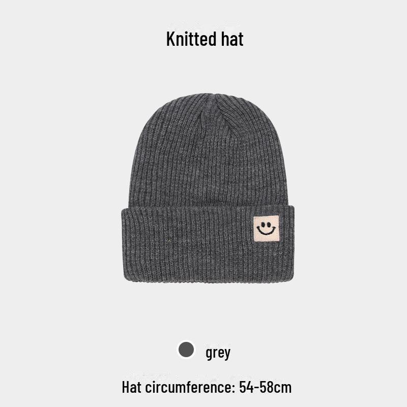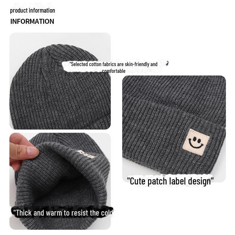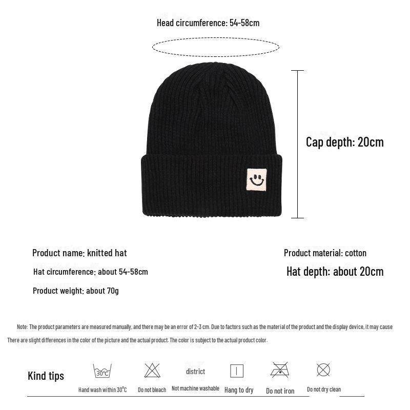 Вязаная шапка со смайликом: Женская осенне-зимняя шапка в форме дыни, с небольшим пучком, теплая защита ушей - унисекс для мальчиков и студентов