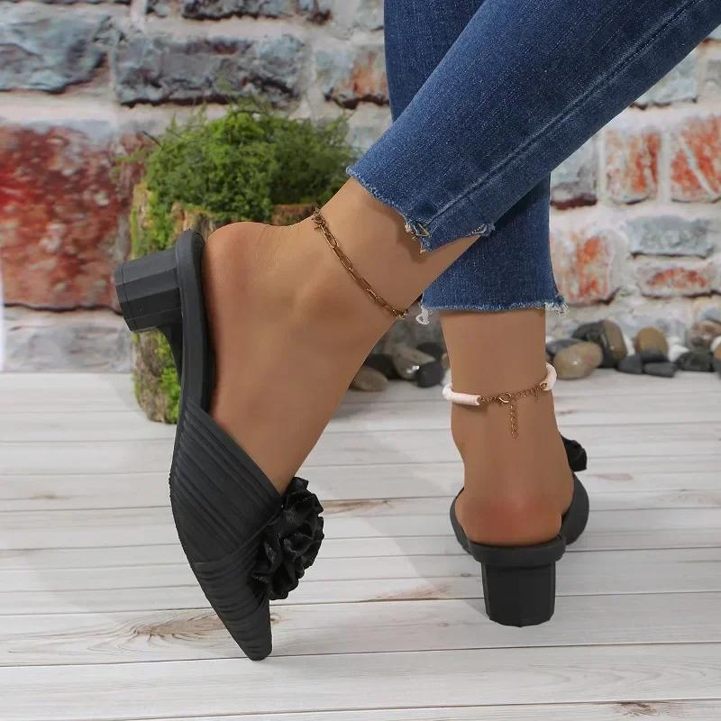 Модные женские тапочки с закрытым носком, однотонные, повседневные туфли с наклейками 2024 года, удобные легкие женские тапочки без застежек