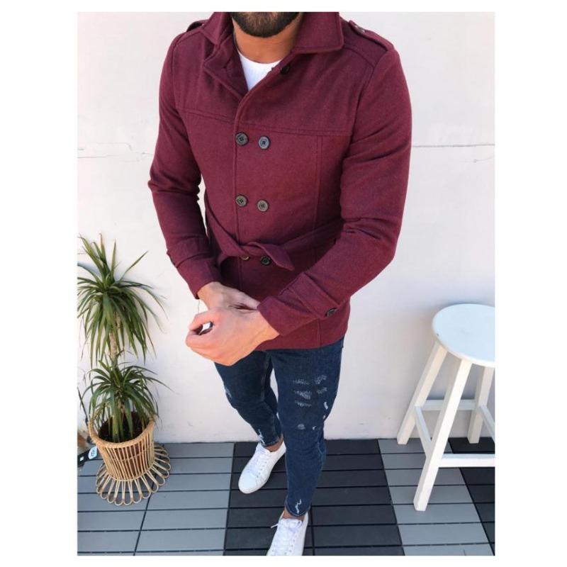 Мужское пальто с поясом, длинный рукав, шерстяное пальто, ветровка, двубортная — купить товар онлайн с бесплатной доставкой по всему миру!