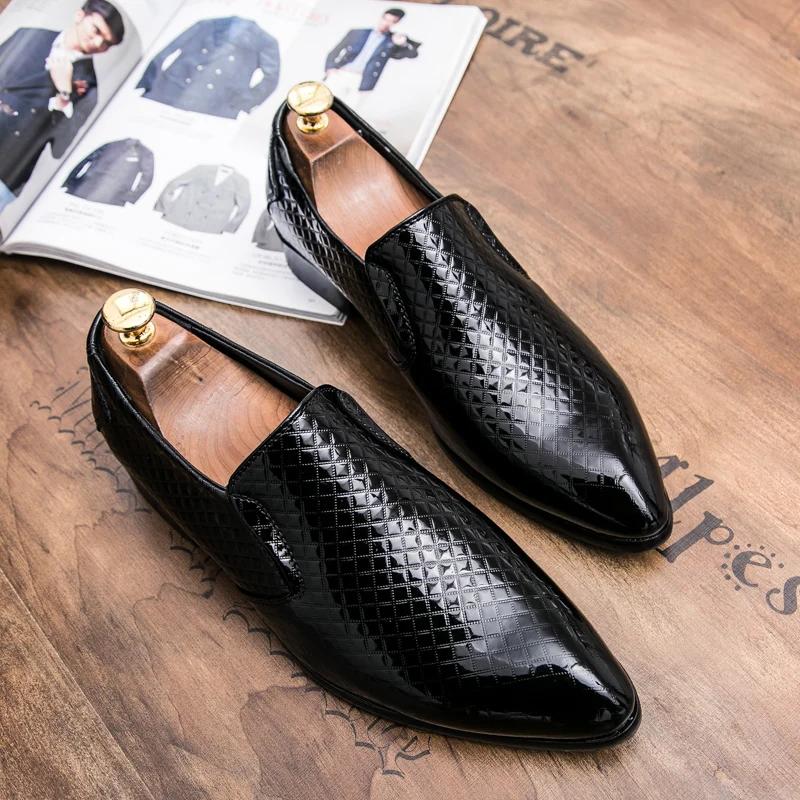 Модные лоферы Новые модные мужские ПУ с тисненым узором Без шнуровки Деловые банкетные туфли Заостренный носок Удобная мужская обувь