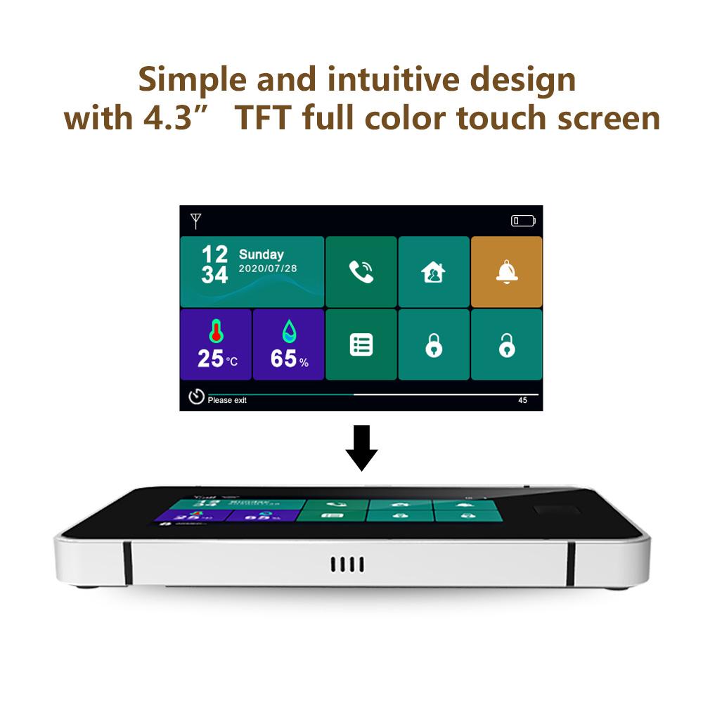 [Комплексное решение для безопасности дома]: Наш комплект охранной системы WiFi 4G с сенсорным экраном 4,3 дюйма, оснащенный функцией распознавания отпечатков пальцев и сигнализацией SOS для оповещения о краже, представляет собой надежное и комплексное решение для обеспечения безопасности дома.. С панелью концентратора и моделью Wi-Fi наша система использует как Wi-Fi 802.11 b/g/n (2,4) и сотовая связь (GSM или 4G) Системы с двумя сетями для бесперебойного подключения и надежной защиты.