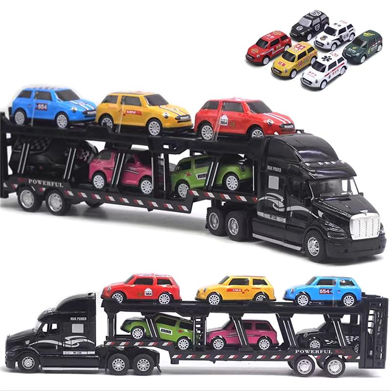 Американский большой грузовик из сплава с 6 шт. мини-моделью литого под давлением автомобиля из металлического сплава, масштабные игрушки, транспортные средства, грузовик для детей