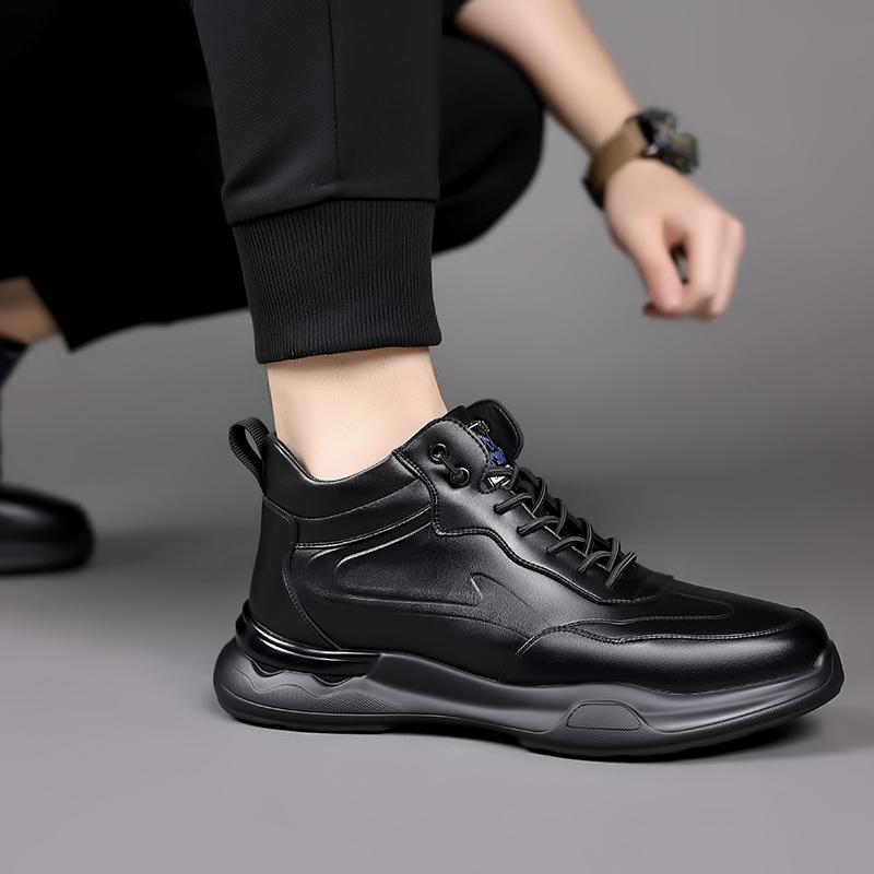 Модные ботильоны из черной кожи, мужские туфли на плоской подошве из хлопка, уличные ботинки на осень-зиму, удобные повседневные модные ботинки на платформе из плюша для мужчин