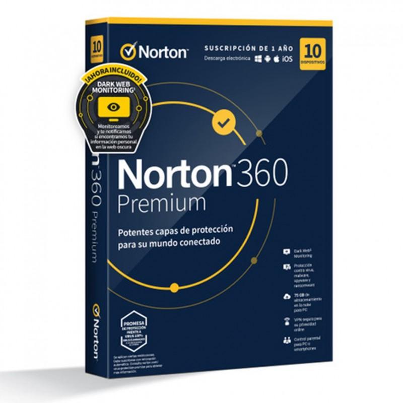 Norton - Antivirus norton 360 premium 75gb español 1 usuario 10 dispositivos 1 año esd electronica drmkey gum