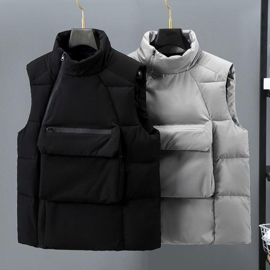 Стильный дизайн: Выберите обычную версию этого безрукавного пухового жилета с воротником-стойкой для создания повседневного, но универсального образа.. Однотонный жилет украшен диагональной застежкой-молнией спереди и большим карманом на молнии для дополнительной функциональности.