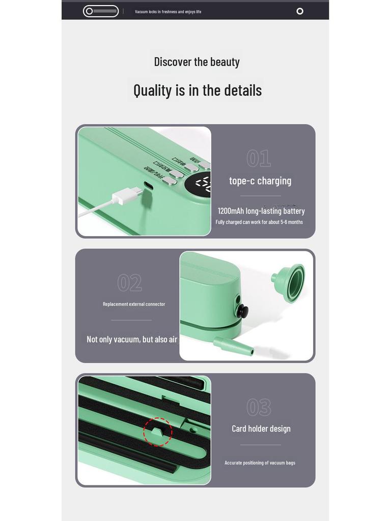 Компактный автоматический беспроводной вакуумный упаковщик для хранения продуктов питания