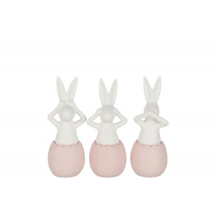 Set de 3 lapins de la sagesse en céramique rose 9x9x25 cm