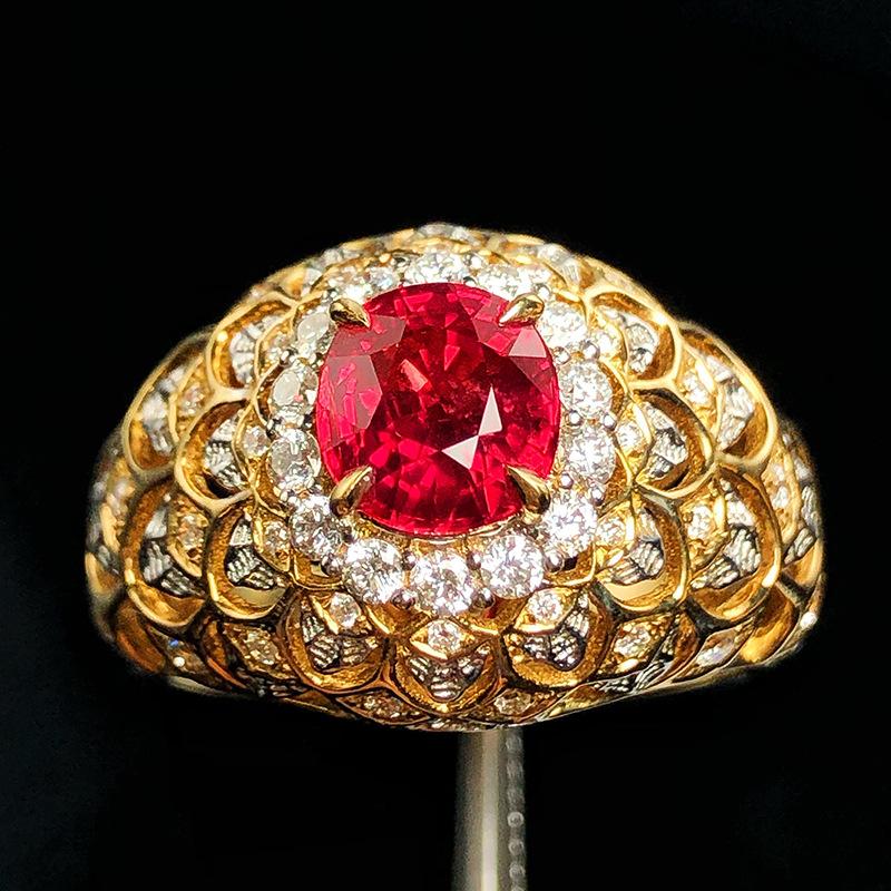 BELLA BOX Итальянское текстурированное резное золотое кроваво-красное матовое кольцо с широким краем, инкрустированное вручную красным бриллиантом, цветное драгоценное кольцо — купить товар онлайн с бесплатной доставкой по всему миру!