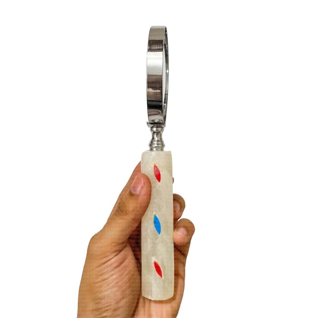 1. **Элегантный дизайн**: Эта 5-кратная лупа имеет стильную каменную настольную подставку-ручку, которая добавляет нотку элегантности любому рабочему пространству.. Это не просто функциональный инструмент, но и изысканный декоративный элемент.