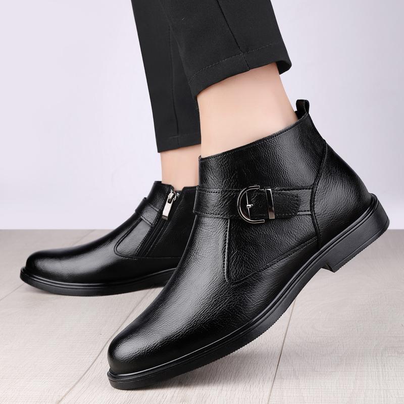 Модные зимние плюшевые теплые мужские ботинки «Челси» на низком каблуке, деловые, формальные, высокие кожаные туфли, универсальные ботильоны в британском стиле