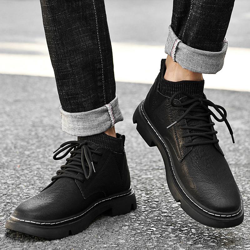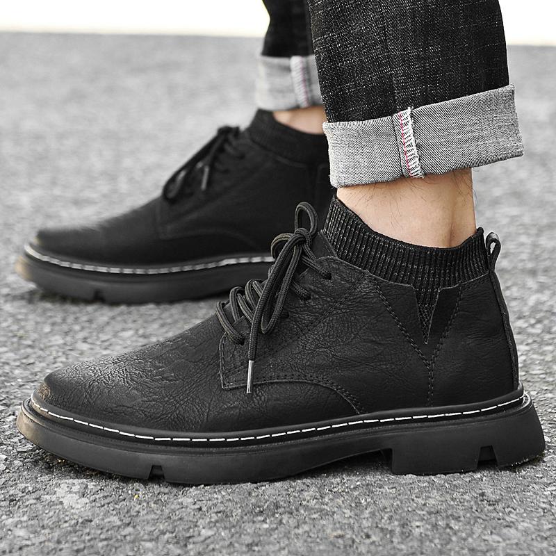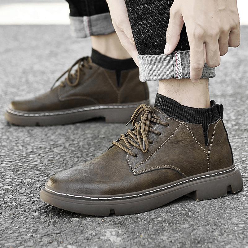 Модная мужская обувь из кожи для активного отдыха, ботильоны, осенне-зимняя обувь для подъема, нескользящая повседневная обувь для пеших прогулок, повседневная, теплая, плюшевая