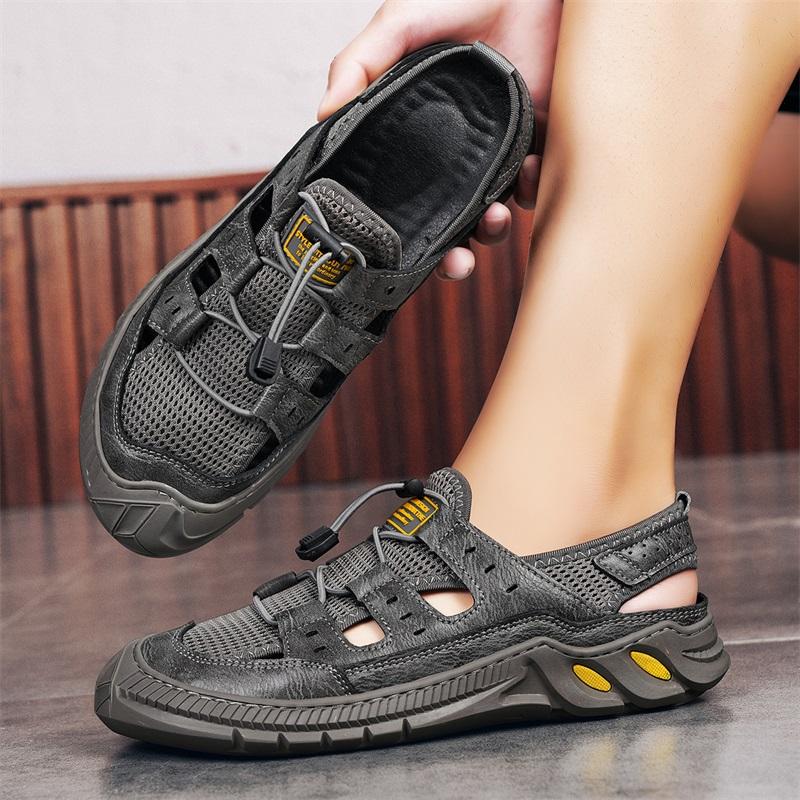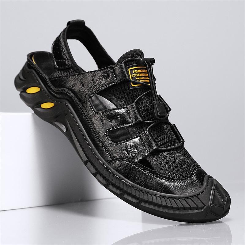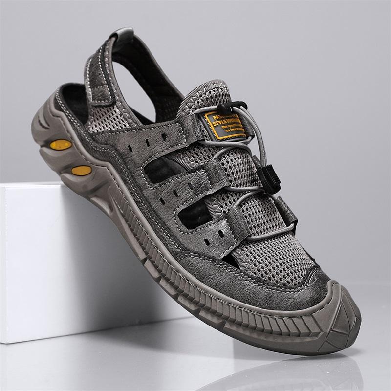 Модная летняя мужская новая повседневная обувь, полые и дышащие пляжные сандалии, универсальная нескользящая мужская повседневная спортивная обувь без застежек