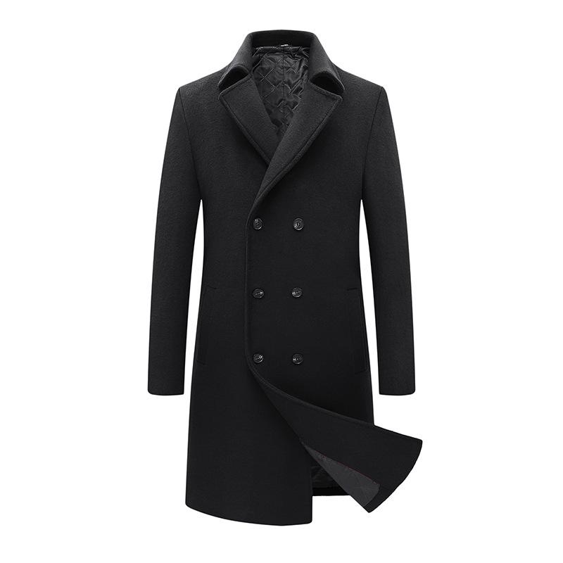 Новое осенне-зимнее шерстяное пальто, тренчкот, мужское, средней и длинной длины, корейская версия, облегающее, из хлопка, утолщенное, шерстяное пальто
