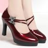 Мода 2024 года, новые модные туфли на платформе с высоким каблуком, женские туфли с круглым носком, черные туфли из искусственной кожи с квадратным каблуком для вечернего платья, женская обувь