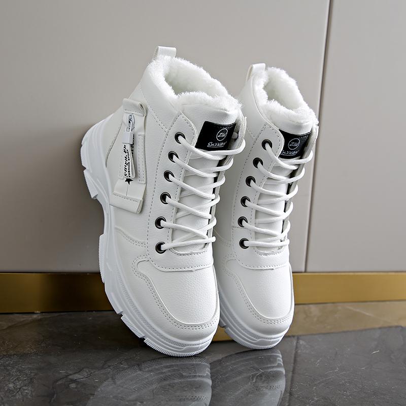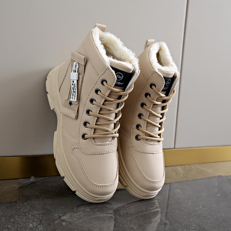 Модные женские ботинки 2024 года, женские зимние новые универсальные короткие ботинки по щиколотку, спортивные британские ботинки с толстой подошвой и бархатной повседневной хлопковой обувью