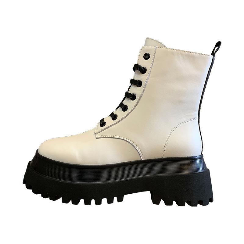 Модные короткие ботинки женские новые зимние однотонные тонкие одиночные женские дышащие увеличенные мотоциклетные ботинки на платформе осенняя мода черный цвет