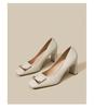 Мода Весна новые квадратный носок толстый каблук женские туфли-лодочки с пряжкой профессиональные туфли на высоком каблуке