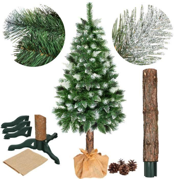 Sapin de Noël artificiel - SPRINGOS - 180 см - Tronc en bois naturalel - Neige artificielle - Pommes de pin