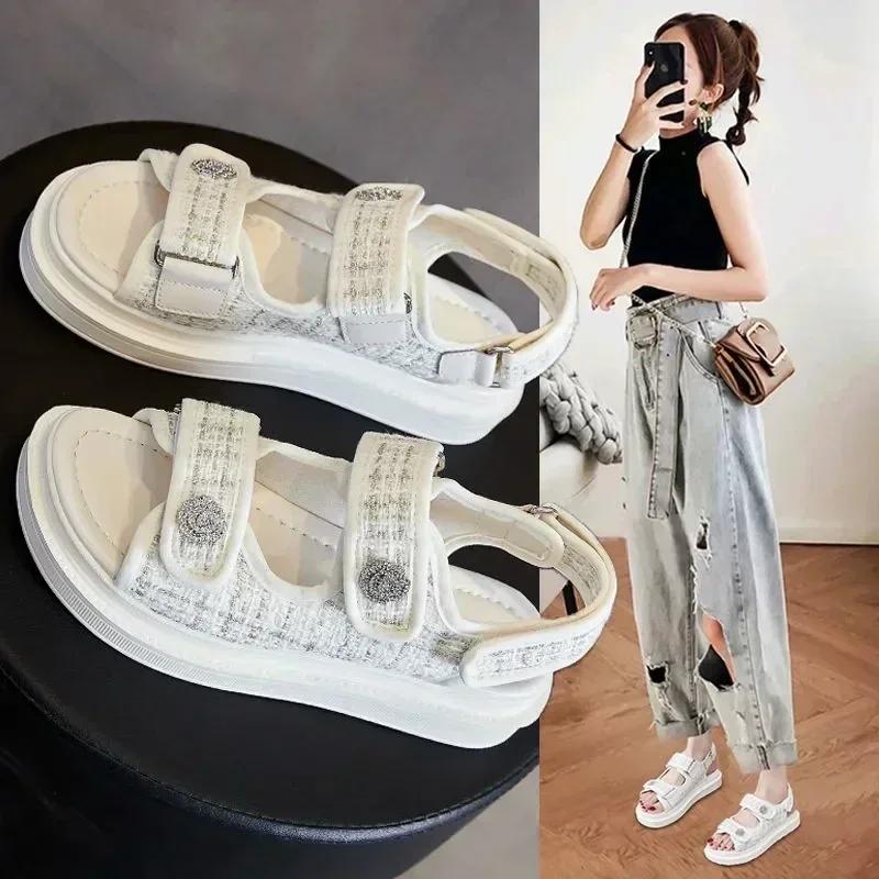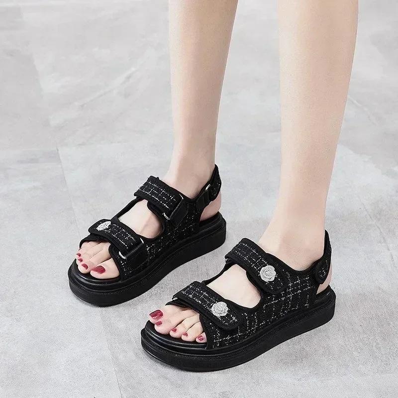 Модные женские сандалии из искусственной кожи, женская обувь, летняя мода, спортивные туфли на плоской подошве для женщин, римские сандалии на платформе для девочек, классический стиль