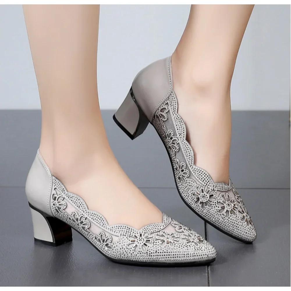 Модные туфли-лодочки из натуральной кожи с вырезом, женские туфли на среднем каблуке с квадратным ромбовидным узором, женские офисные туфли с кристаллами — купить товар онлайн с бесплатной доставкой по всему миру!