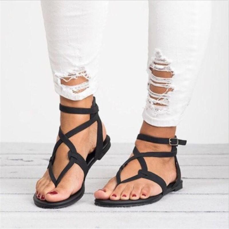 Модные женские сандалии-гладиаторы, летняя женская обувь, большие размеры 35-43, сандалии на плоской подошве, женская повседневная обувь в римском стиле, сандалии 458