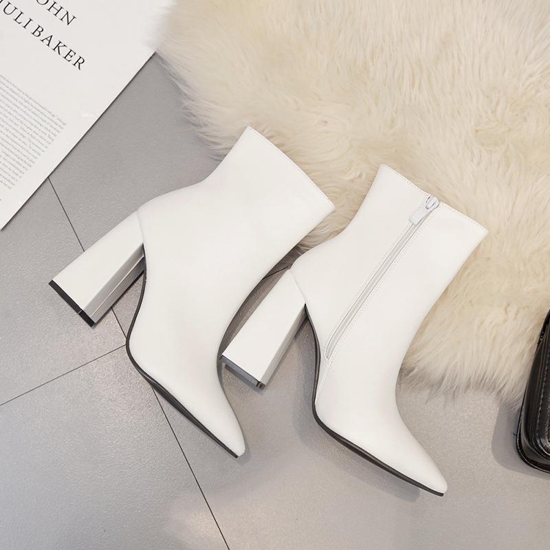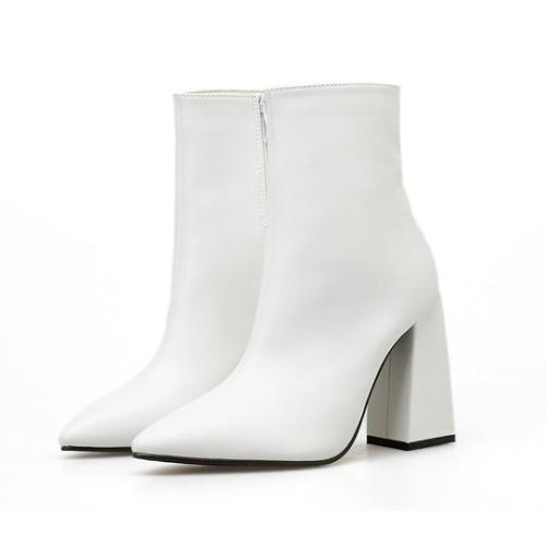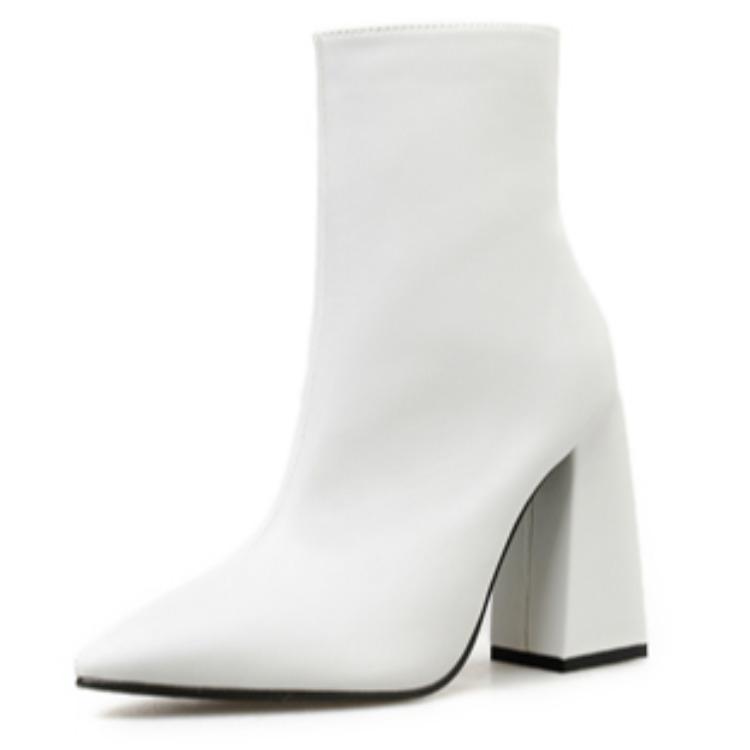 Модные новые модные роскошные женские толстые 10,5 см высокие каблуки фетиш-носки сапоги мягкие кожаные белые ботильоны на каблуках666