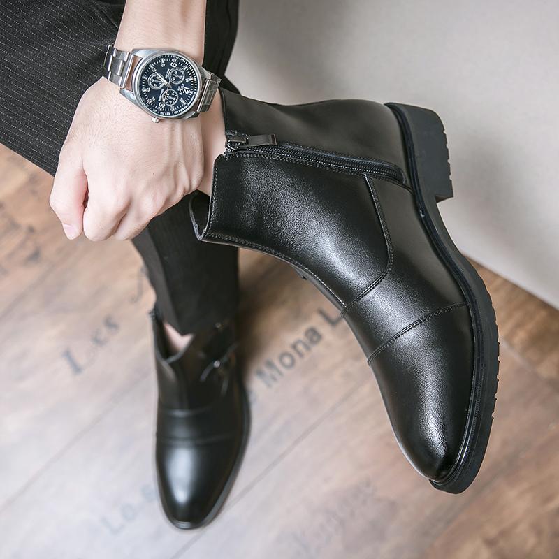 Зимние новые роскошные брендовые мужские ботинки черные ботинки челси мужские деловые кожаные ботинки на толстой подошве с острым носком дизайнерская мужская обувь