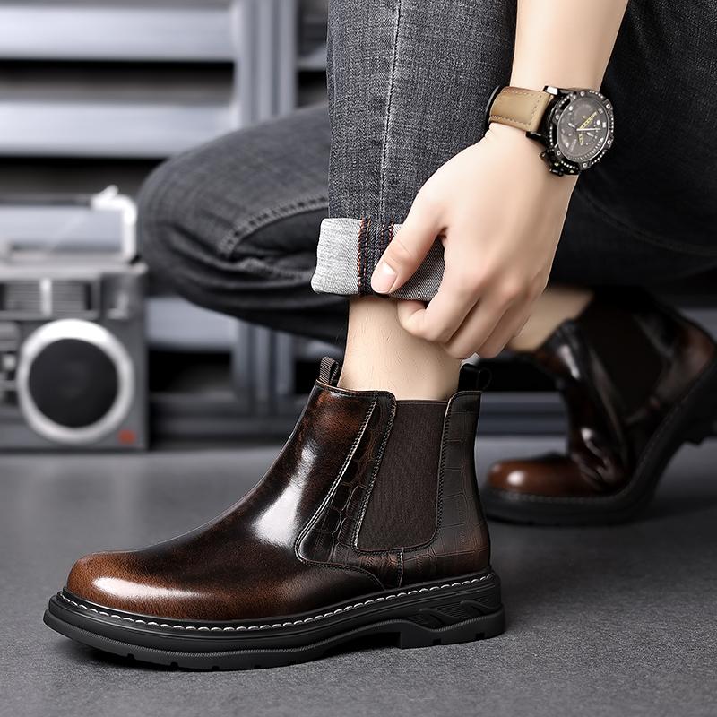 Роскошные мужские осенние ретро британские трендовые брендовые полированные высокие кожаные туфли модные удобные ботинки челси на толстой подошве