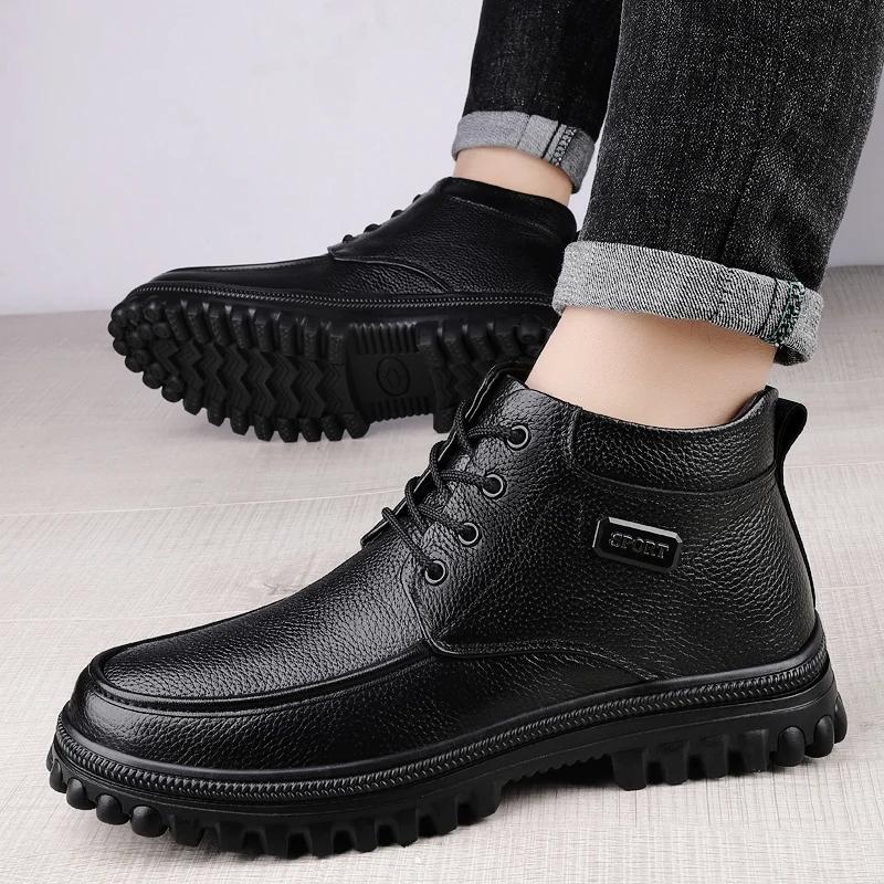 Универсальные мужские ботинки на щиколотку для отдыха, прогулки, нескользящие мужские базовые ботинки, классические мотоциклетные ботинки, натуральная кожа, высокие мужские туфли