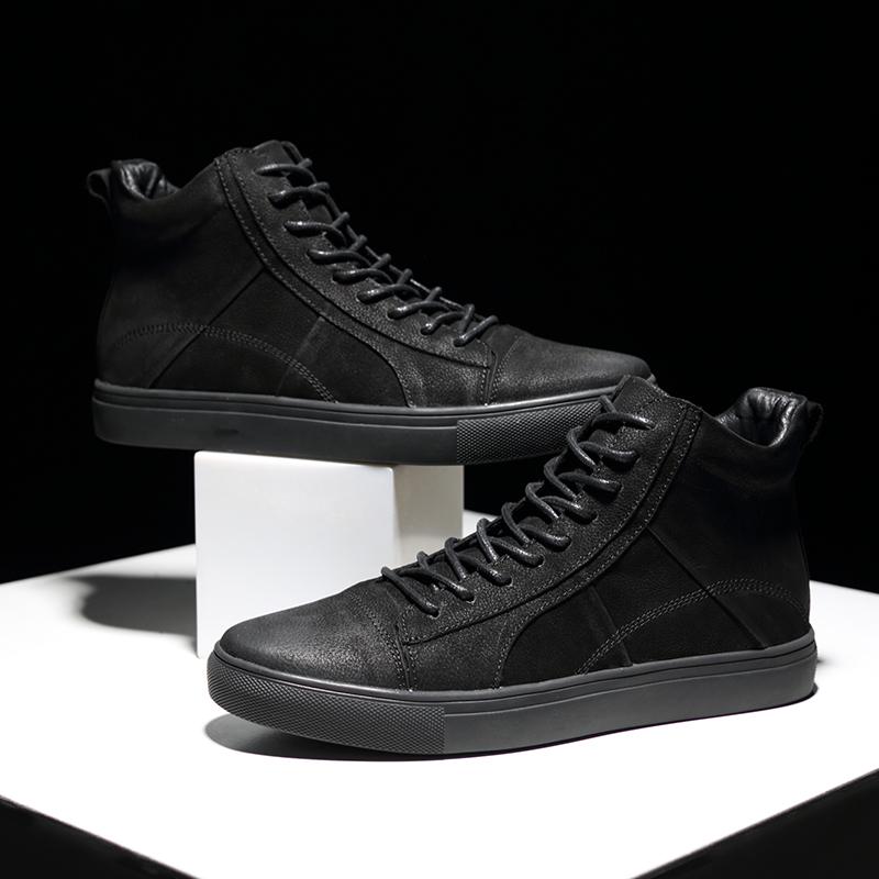 Высокие мужские кроссовки, черные мужские повседневные туфли, зимние ботинки из натуральной кожи для мужчин, спортивные теплые кроссовки, роскошные ботильоны на плоской подошве