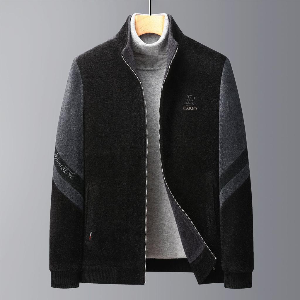 Осенне-зимняя мужская куртка из синели, модная повседневная куртка с воротником-стойкой на молнии из хлопка, утолщенное мужское пальто